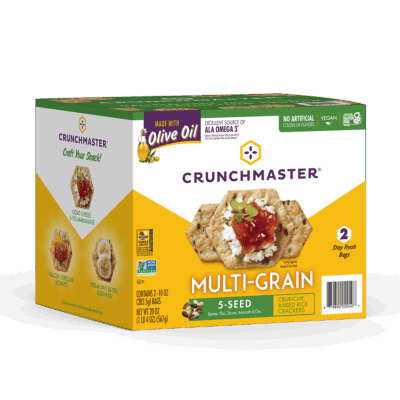 Ingredients: Brown Rice Flour, Potato Starch, Sesame Seeds, Flax Seeds, Olive Oil, Quinoa, Amaranth Seeds, Chia Seeds, Sea Salt, Tamari Soy Sauce Powder (Tamari Soy Sauce [soybeans, salt], Maltodextrin, Salt).