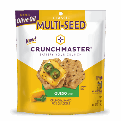 Ingredients: Brown Rice Flour, Sesame Seeds, Queso Seasoning (Whey, Salt, Maltodextrin, Dehydrated Vegetables (Onion, Jalapeno, Green Bell Pepper and Garlic), Cheddar Cheese Powder [Cheddar Cheese (Milk, Cheese Culture, Salt, Enzyme), Whey, Buttermilk Solids, Salt, Sodium Phosphate, Lactic Acid], Vinegar Powder (Maltodextrin, White Distilled Vinegar), Dextrose, Yeast Extract, Spices, Natural Flavor), Potato Starch, Olive Oil, Flax Seeds, Amaranth Seeds, Quinoa Seeds, Tamari Soy Sauce Powder (Tamari Soy Sauce [Soybeans, Salt], Maltodextrin, Salt), Natural Flavor.